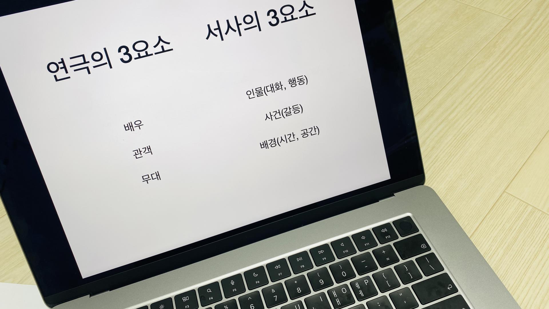 이후에는 연극이란 무엇인지 생각해보고 의견을 나누는 시간을 간단하게 가졌고요. 연극을 이루는 3요소와 스토리를 이루는 서사의 3요소를 다루어봤습니다.
